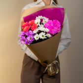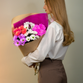 Букет из 5 хризантем микс (с упаковкой) с доставкой