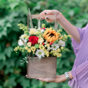 В составе сезонные цветы. Сейчас несезон. Цена может быть очень высокой, качество низким, а цветов нет в наличии. Возможность заказа уточняйте у операторов.